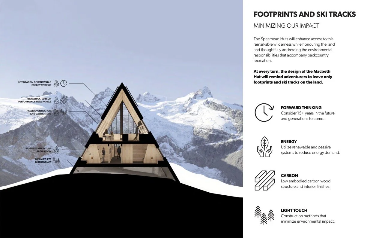 The night will feature a project update from the Spearhead Huts team and a presentation from architect Michael Green, who designed the Macbeth Hut. We'll share more about the vision, progress, and timeline for the hut's construction. We’ll also be hosting a silent auction with a great lineup of donated gear and outdoor experiences.