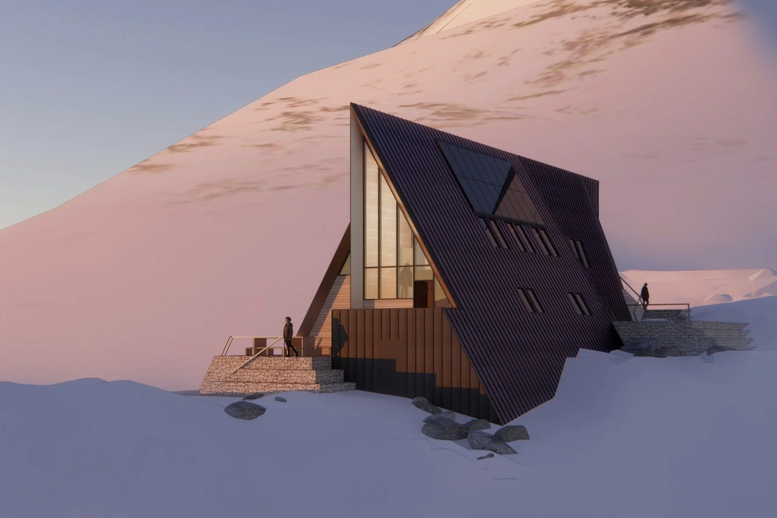 Rendering of the Macbeth Hut's South-facing facade. Photo: Michael Green Architecture.